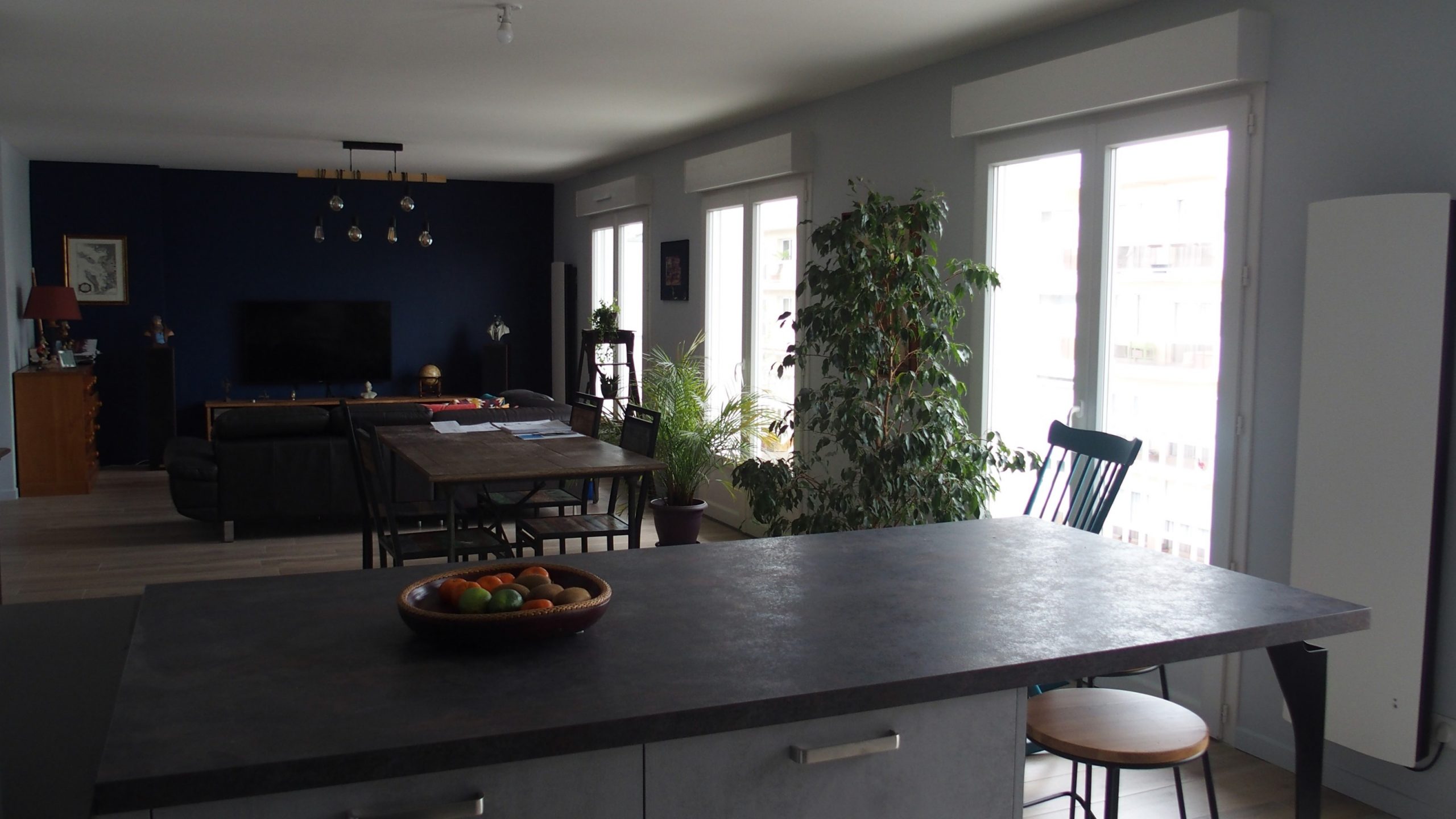 Il souhaite agrandir le salon et y installer une belle cuisine pour recevoir, créer une suite parentale dans la chambre et l’ancienne cuisine ainsi qu’une salle de bains indépendante proche de la chambre d’amis. Pour gagner en confort thermique l’appartement est complètement ré-isolé et les menuiseries sont changées. L’électricité, la plomberie et les revêtements de sols sont remplacés.